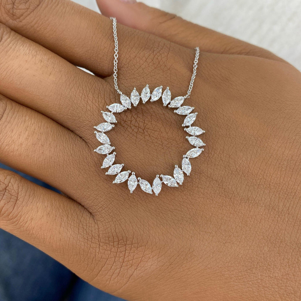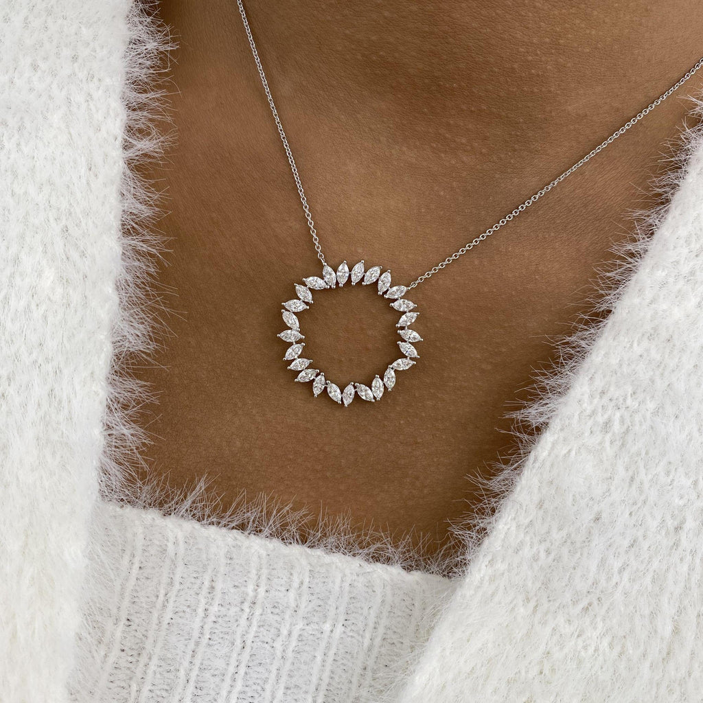 Circle Wreath Necklace 2.3 ct TCW , Solid Gold 14k