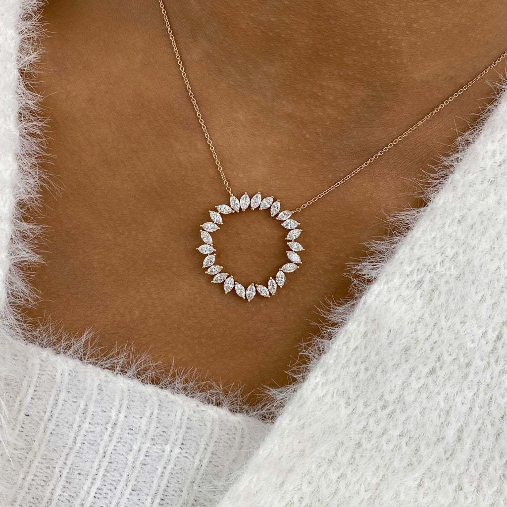 Circle Wreath Necklace 2.6 ct TCW , Solid Gold 14k
