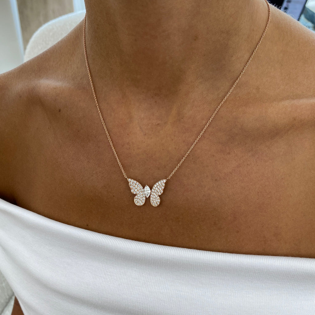Diamond Butterfly Pendant Fashion Necklace 1.25 ct TCW, Rose Gold 14K
