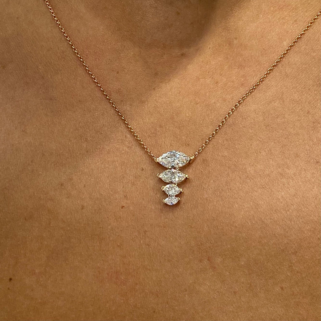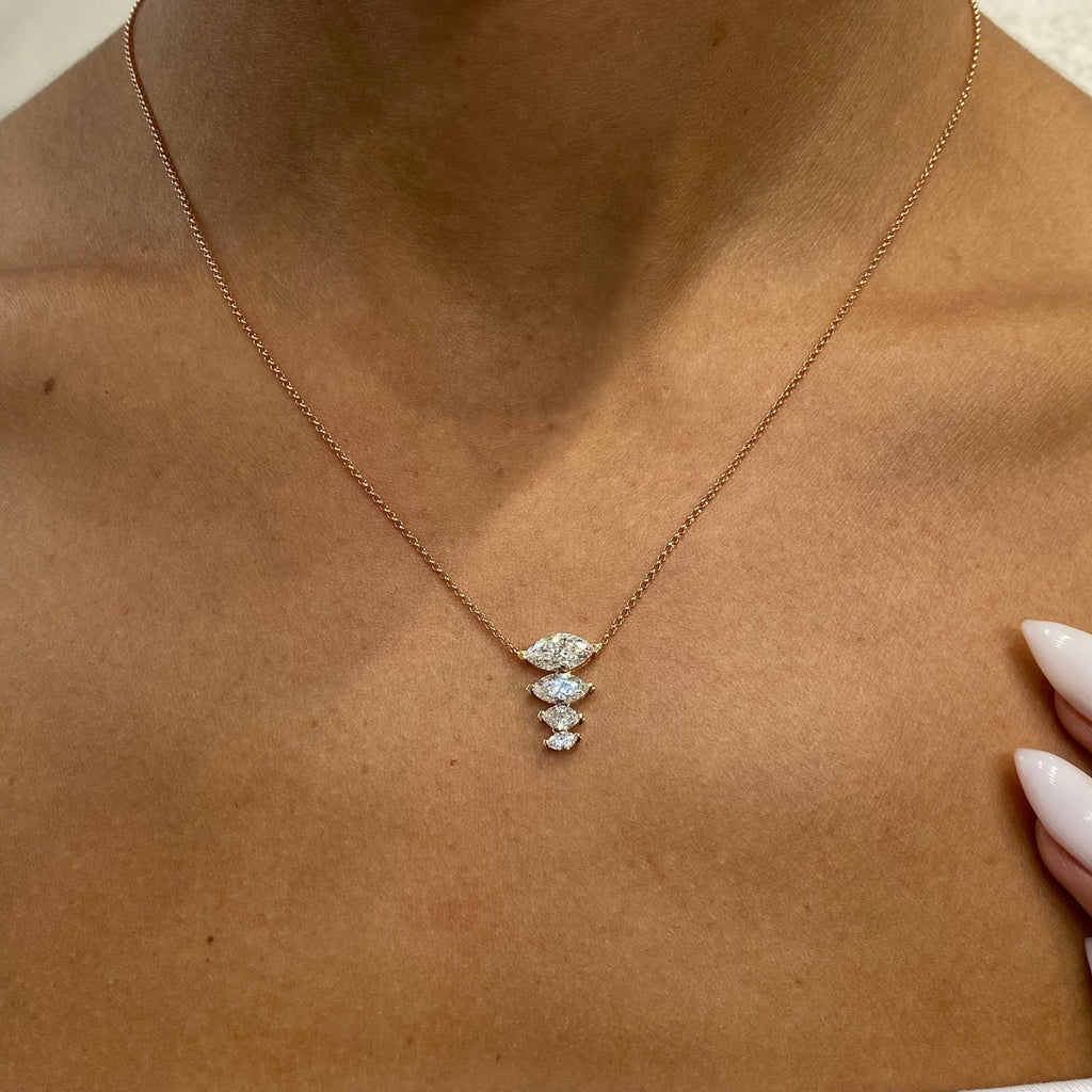 Diamond Pendant Fashion Necklace 1.30 ct TCW, Rose Gold 14K