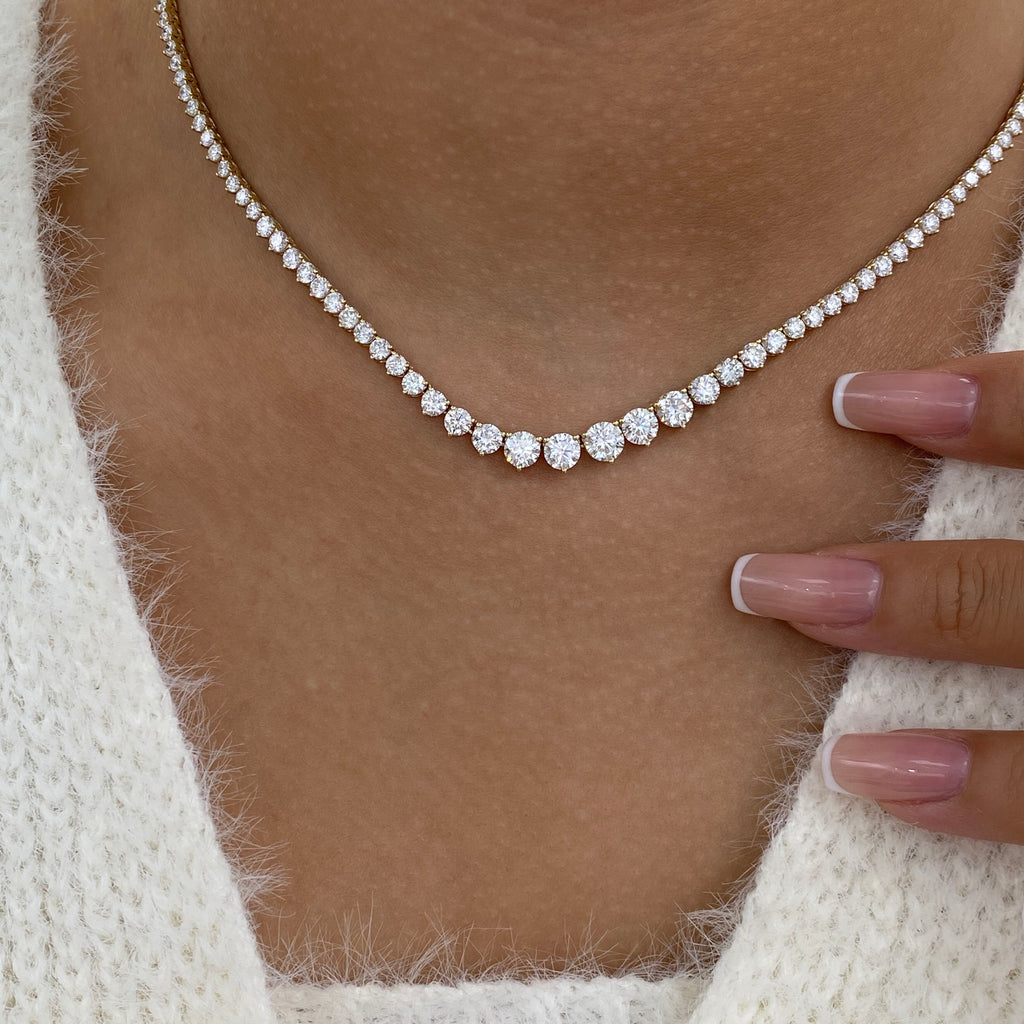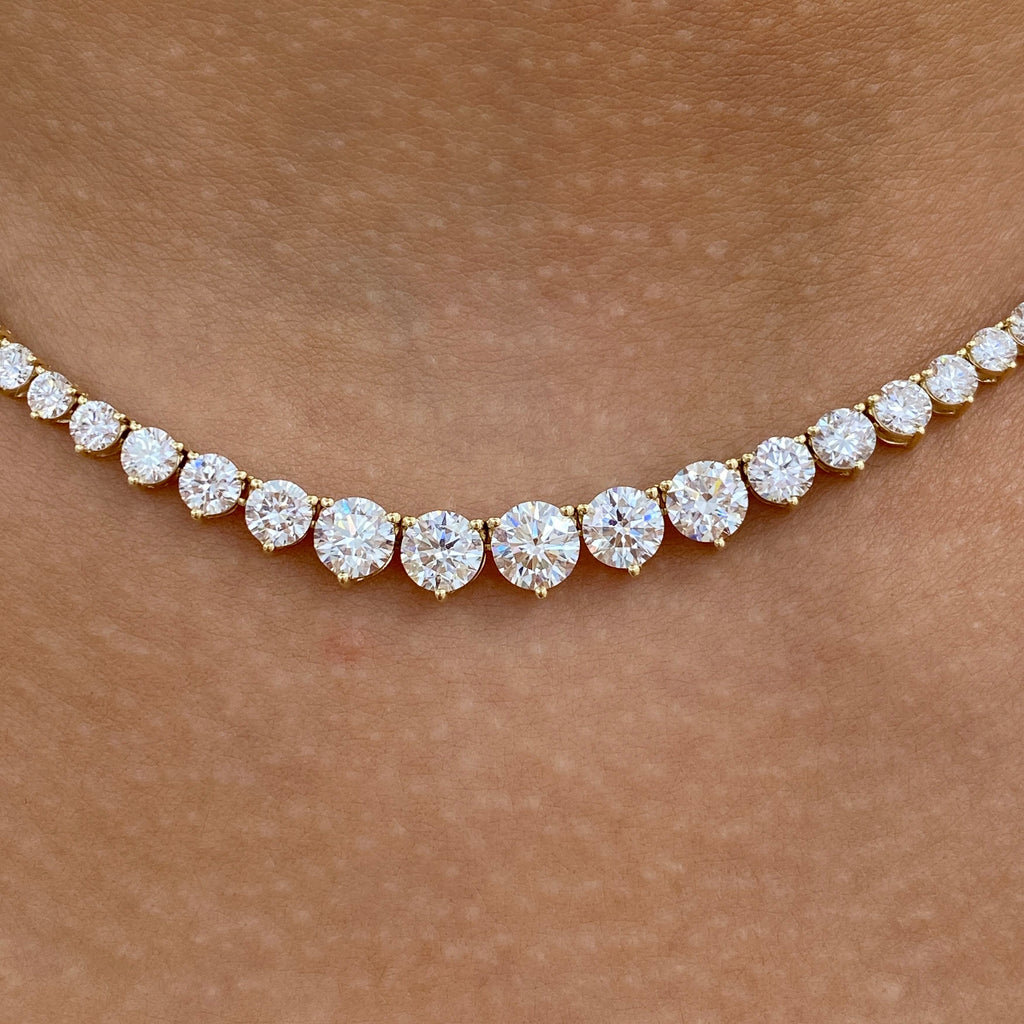 Diamond Tennis Necklace 9.7 ct Yellow Gold
