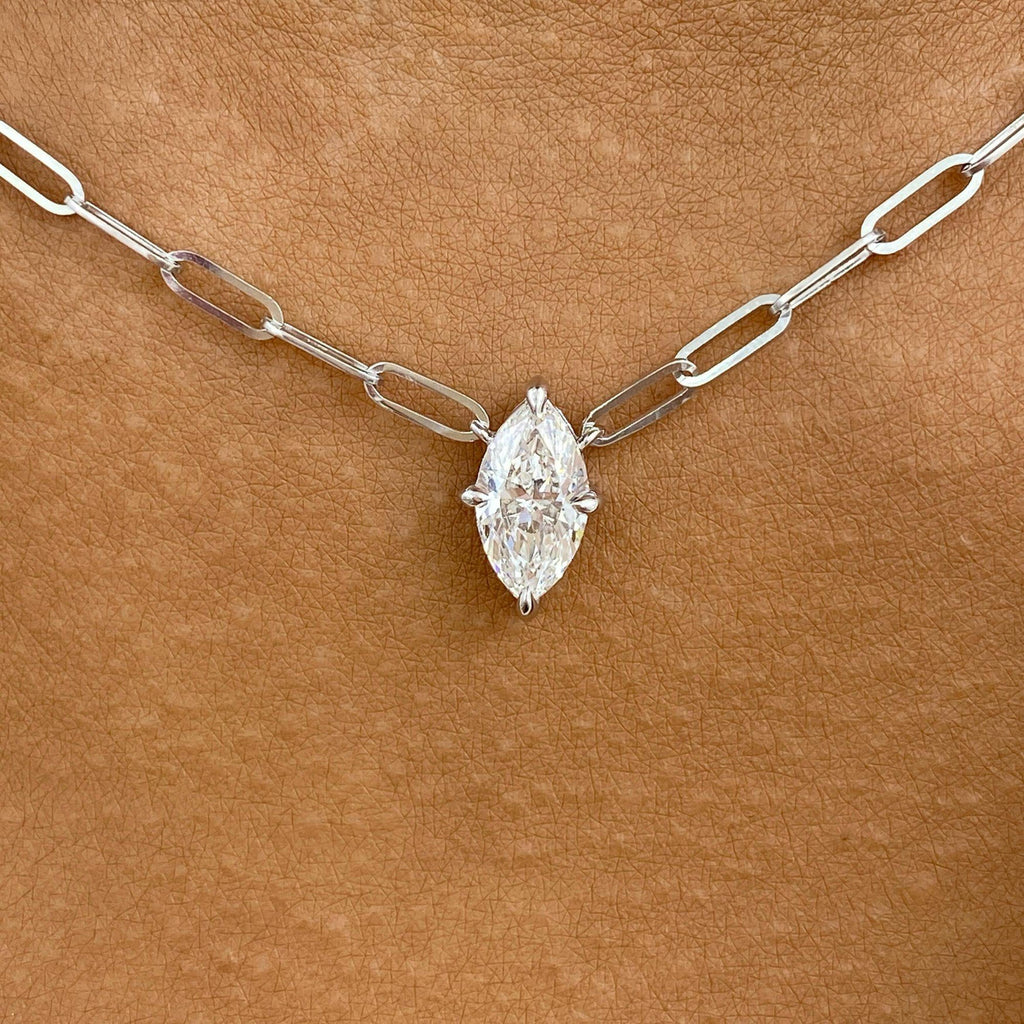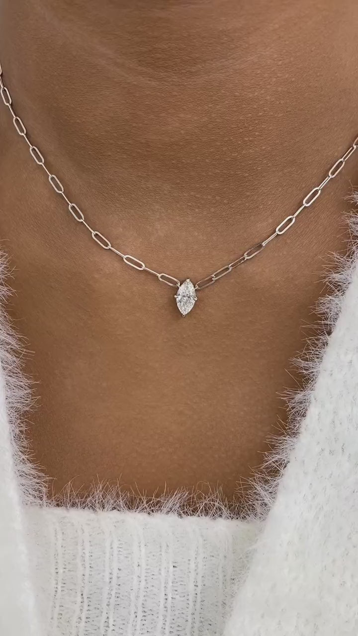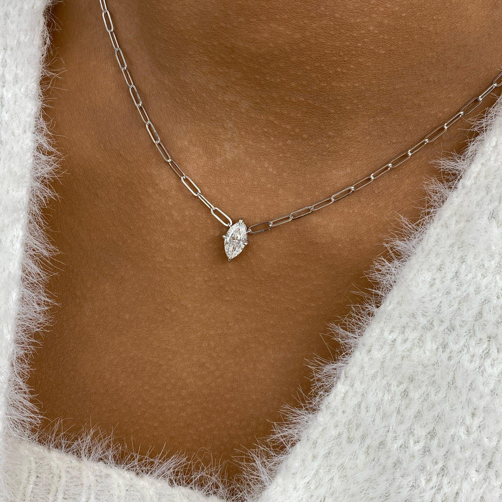 Solitaire Necklace 1 ct TCW , Solid Gold 14k