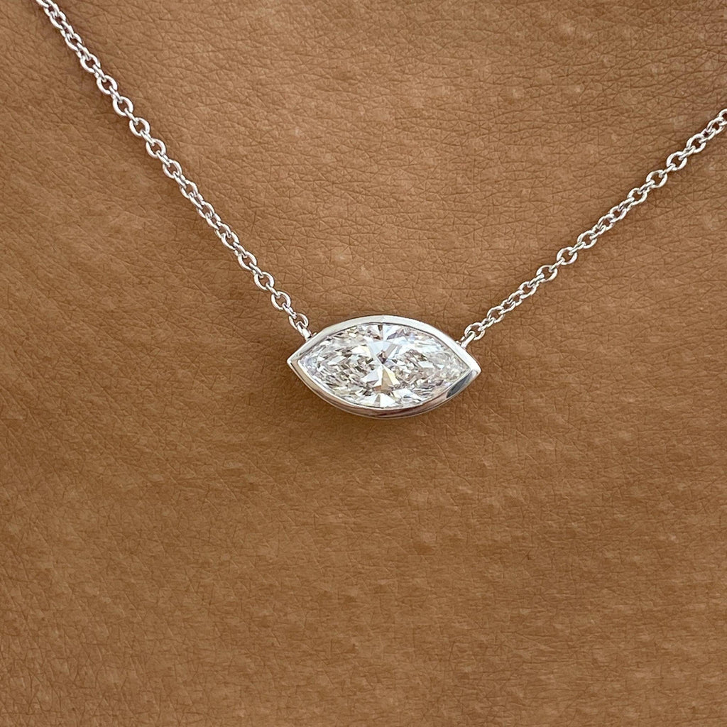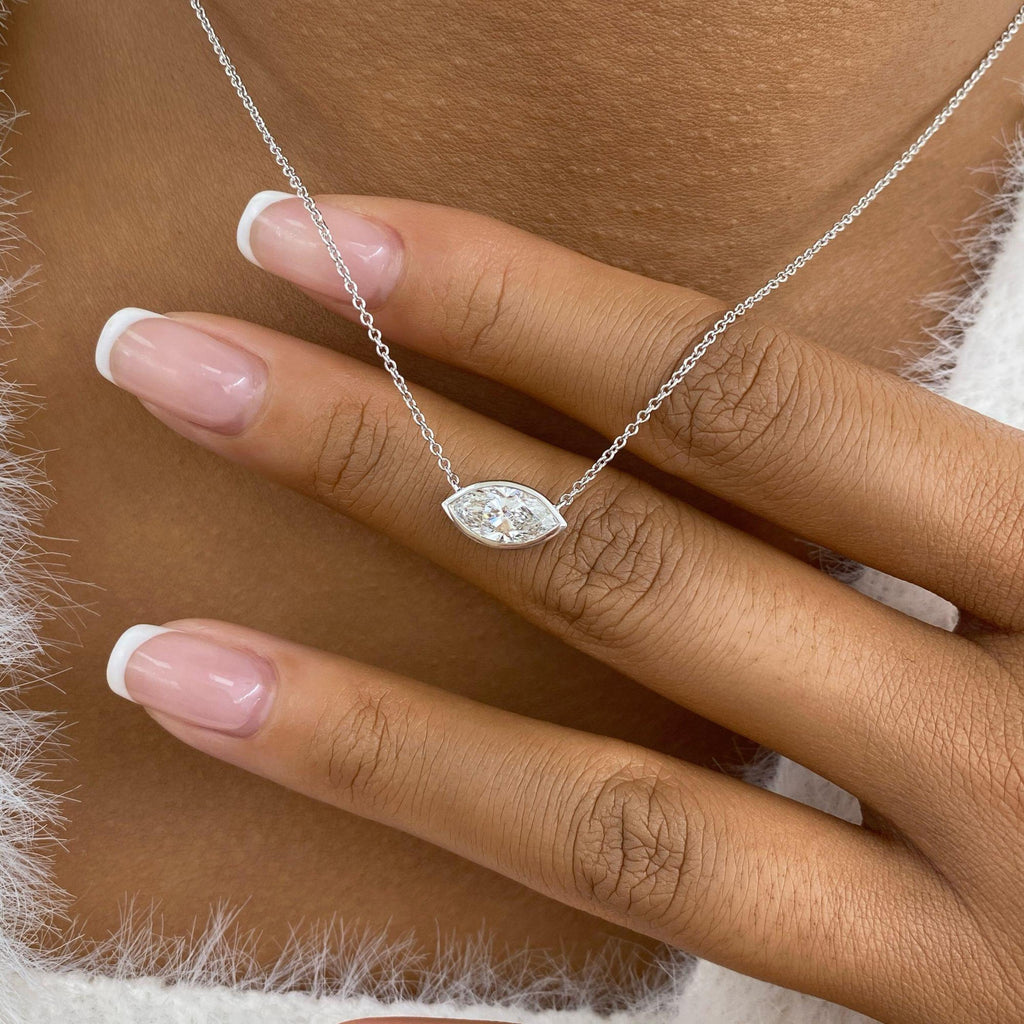 Solitaire Necklace 1 ct TCW , Solid Gold 14k