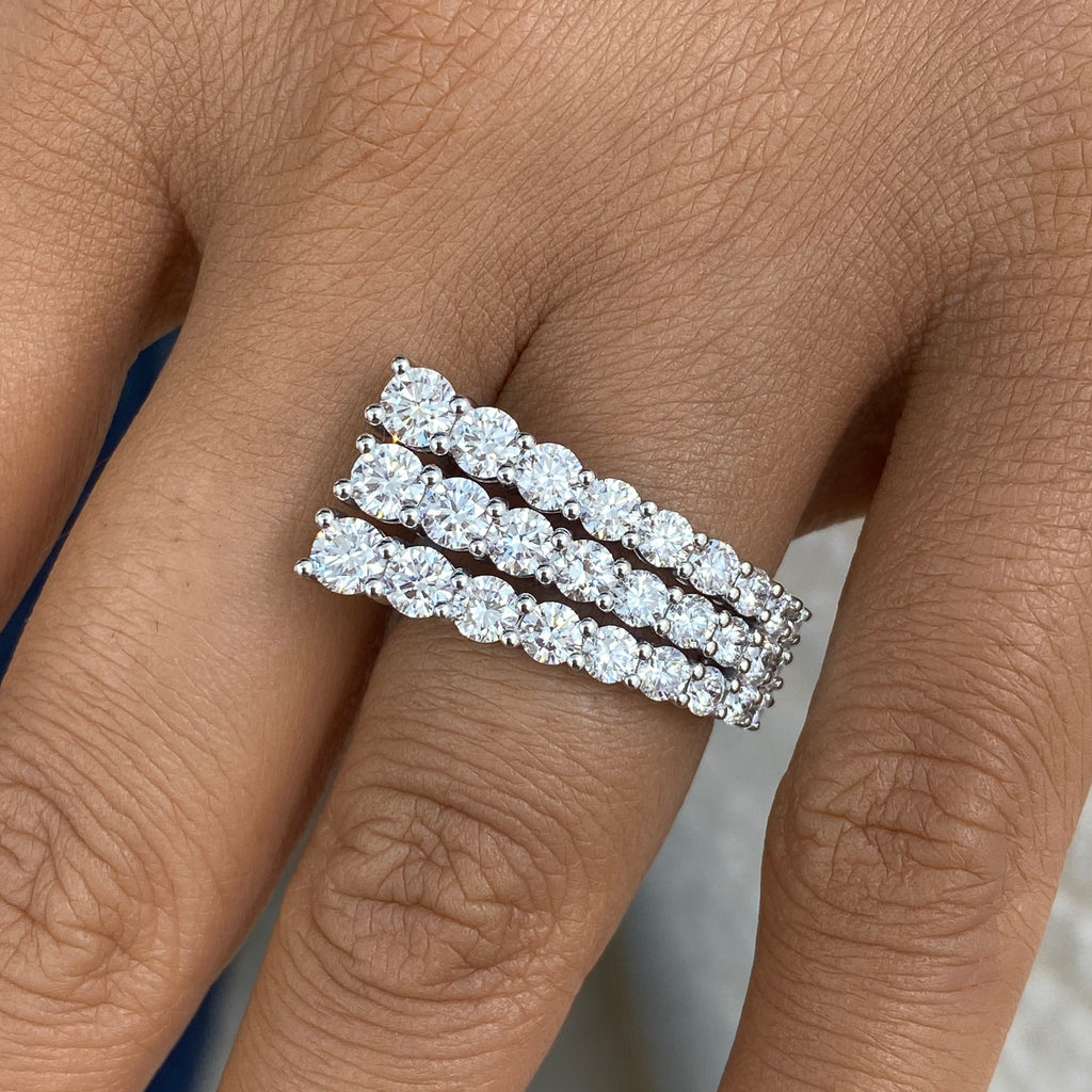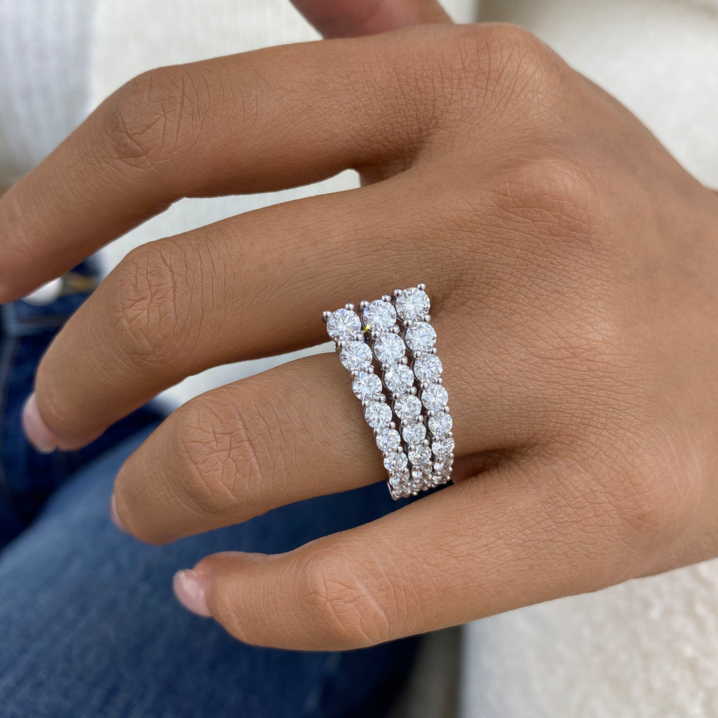 Diamond 3 Row Band Ring 2.90 ct White Gold