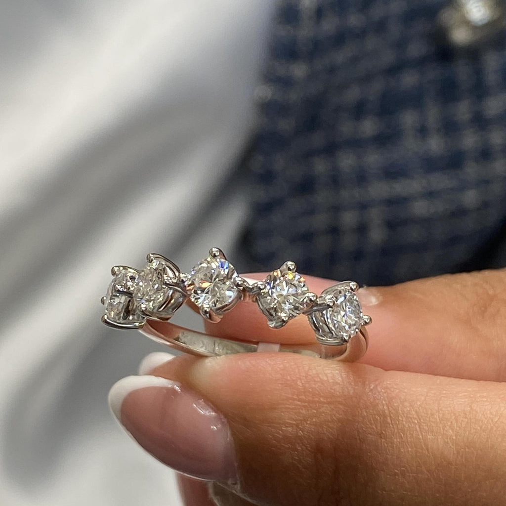 Diamond 5 Stone Ring 1.26 Carat White Gold 14K