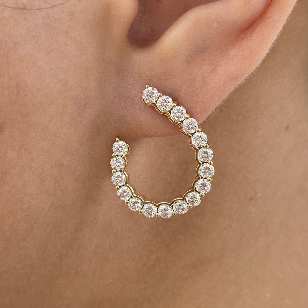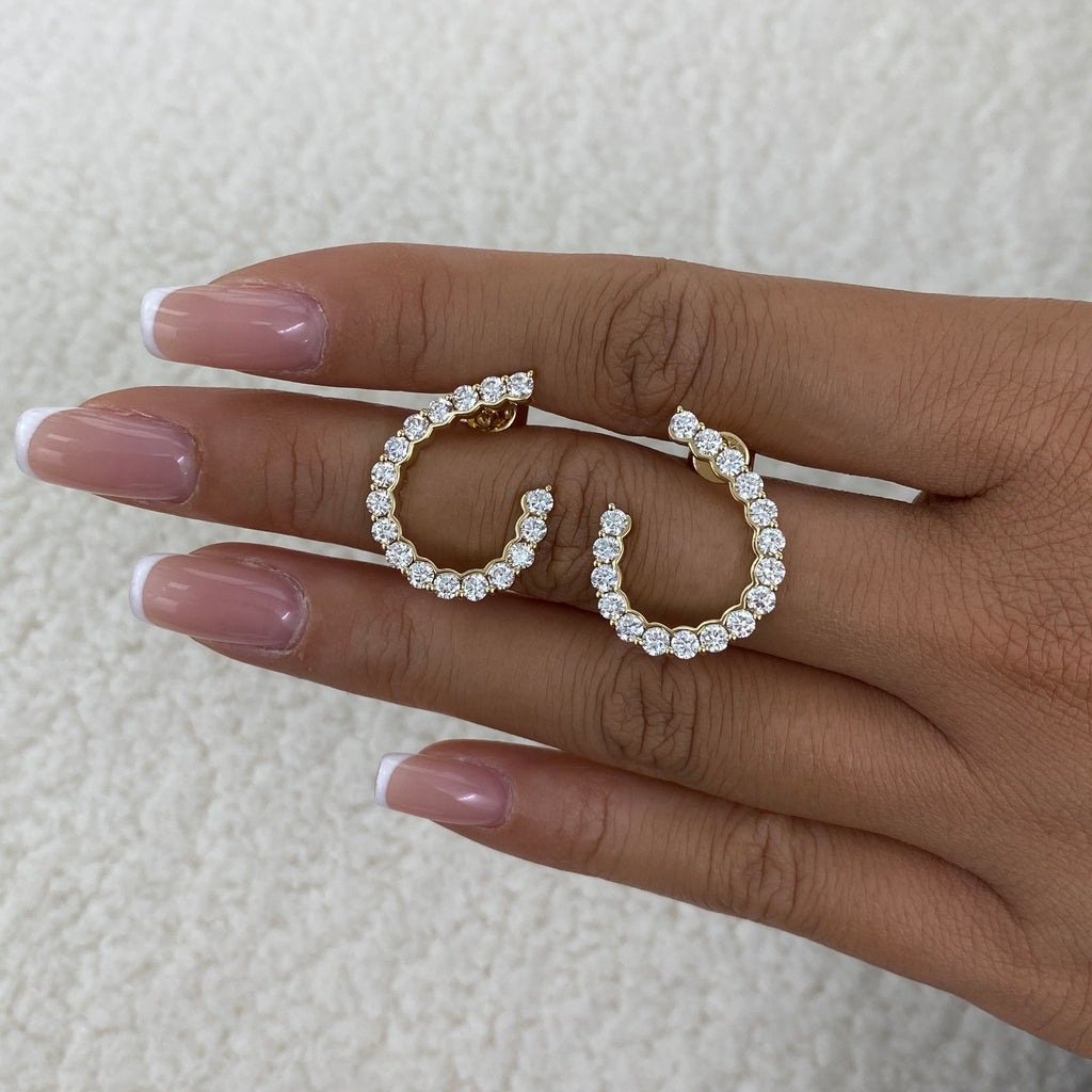 Diamond Open Hoop Earrings 2.4 ct Yellow Gold