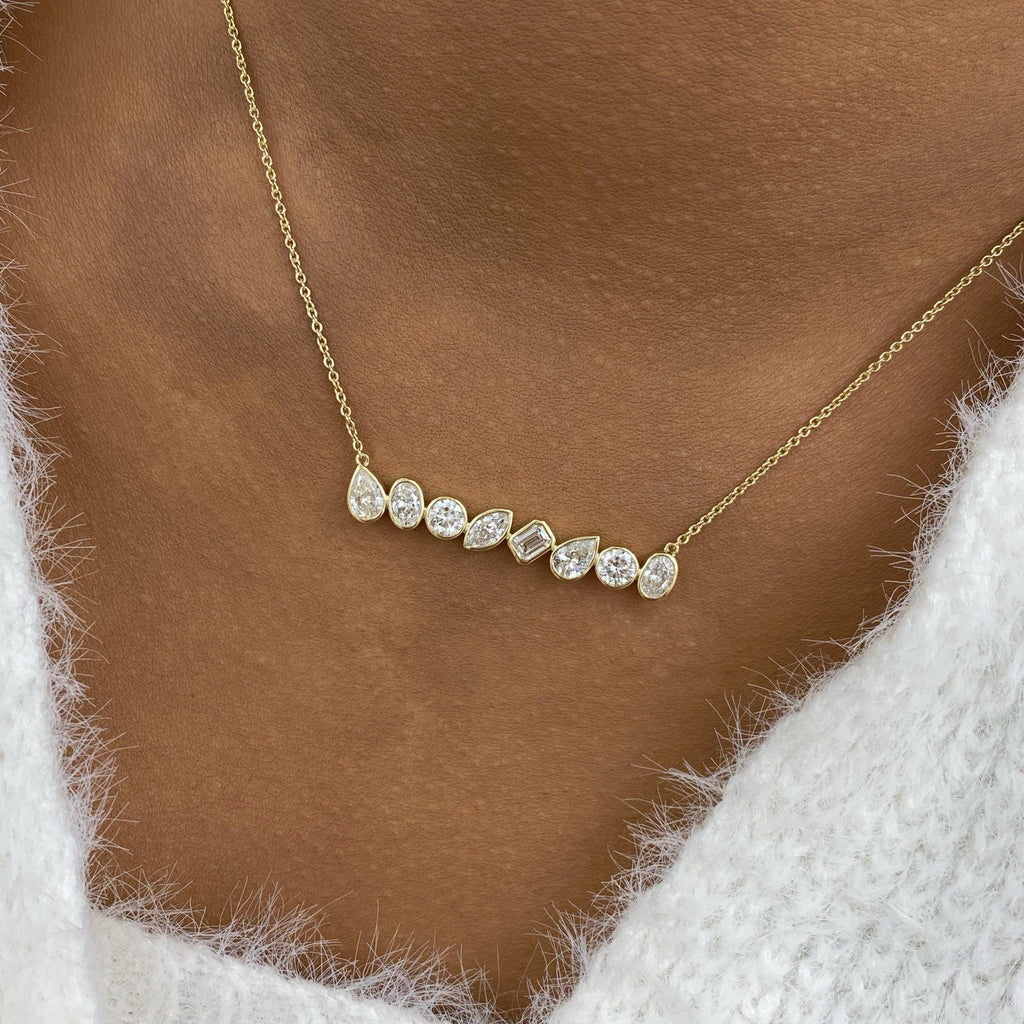 Bar Necklace 2.1 ct TCW , Solid Gold 14k