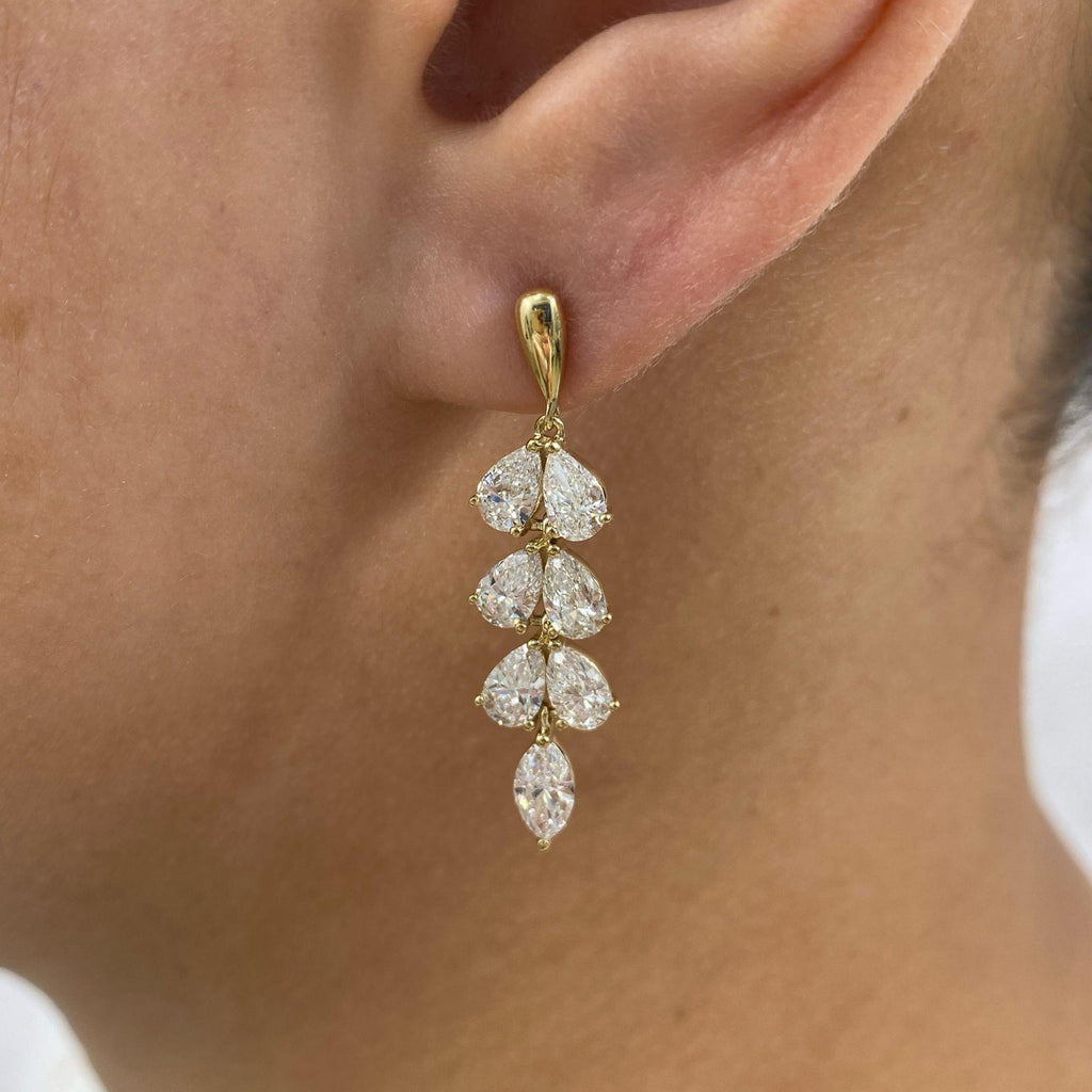 Chandelier Drop Earrings 3.9 ct TCW , Solid Gold 14k