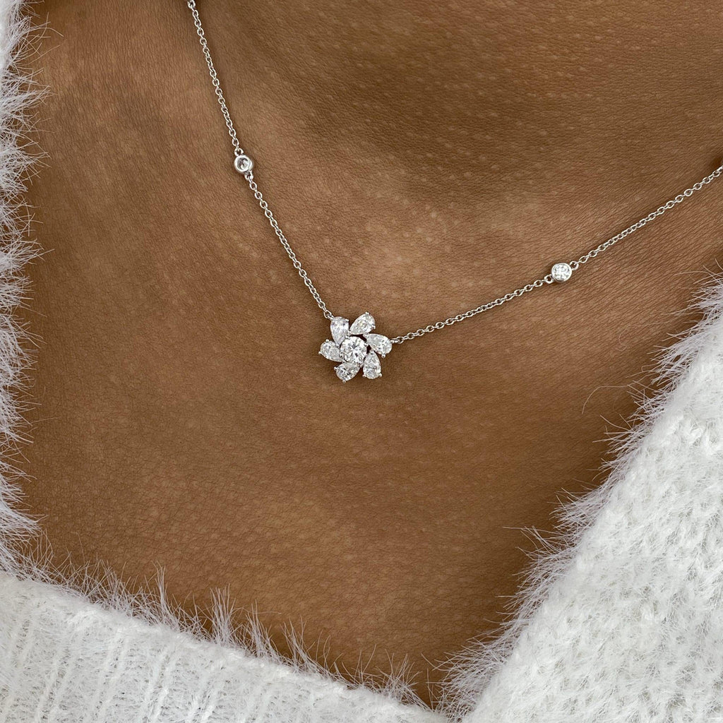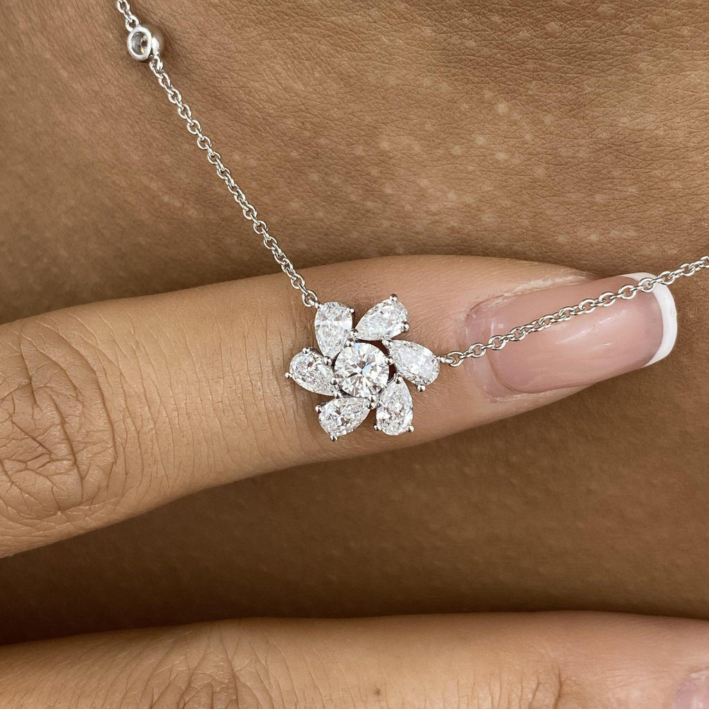 Cluster Necklace 1.3 ct TCW , Solid Gold 14k