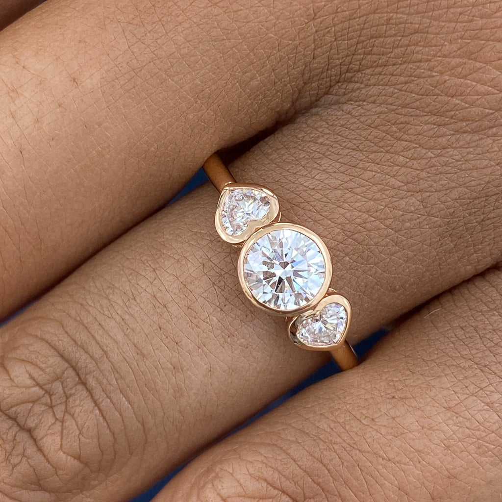Diamond 3-stone Bezel Fashion Ring 0.95 ct TCW, Rose Gold 14K