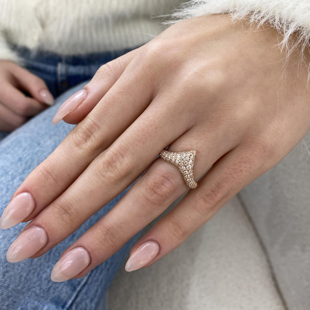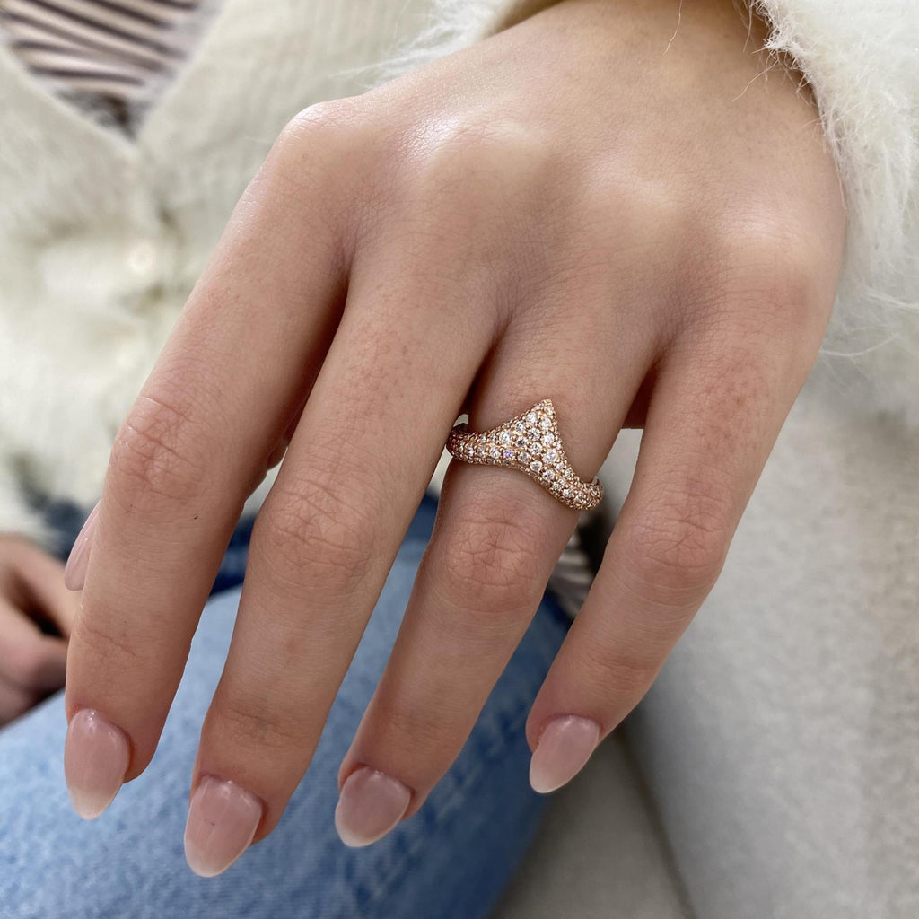 Diamond Chevron Pave Ring 0.87 Carat Rose Gold 14K