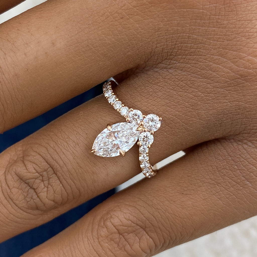 Diamond Cluster Fashion Ring 1.45 ct TCW, Rose Gold 14K