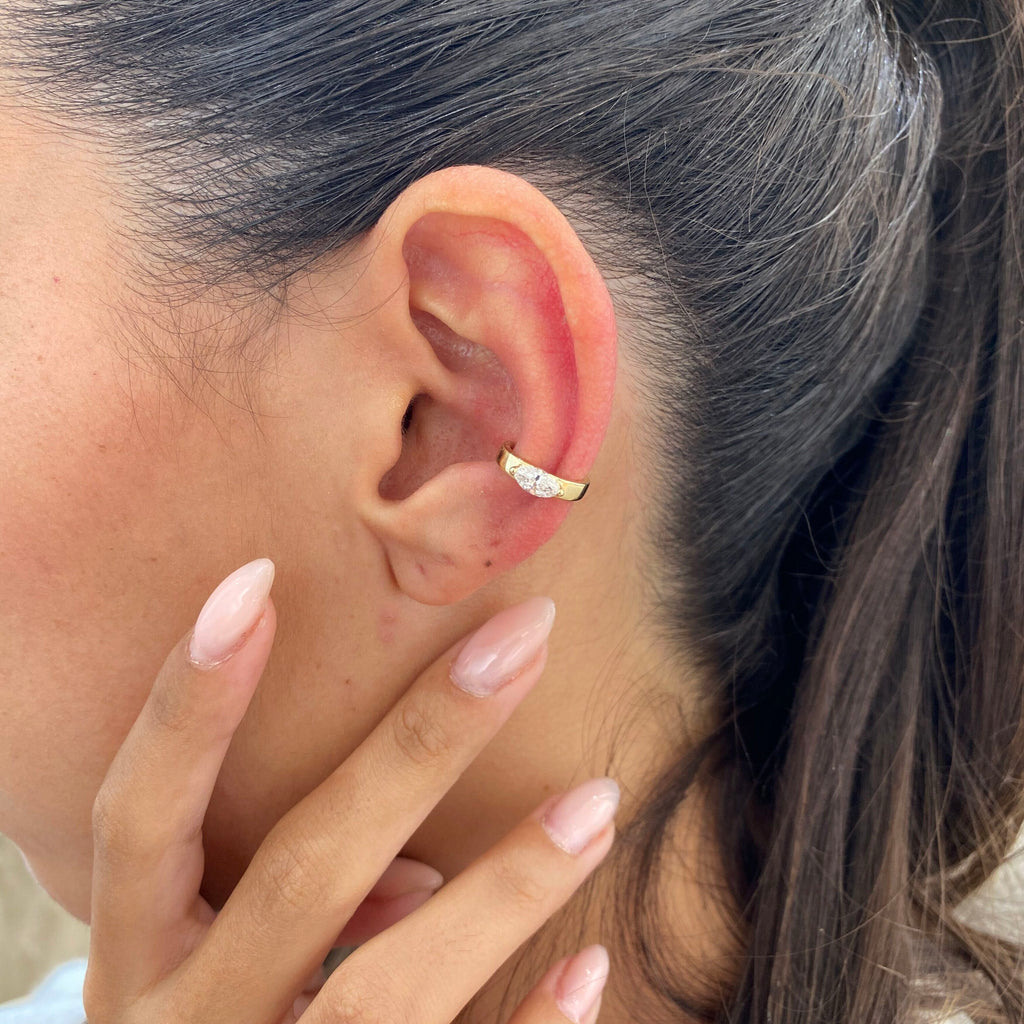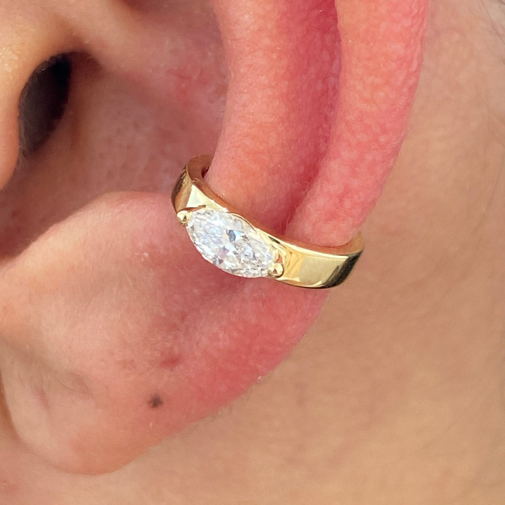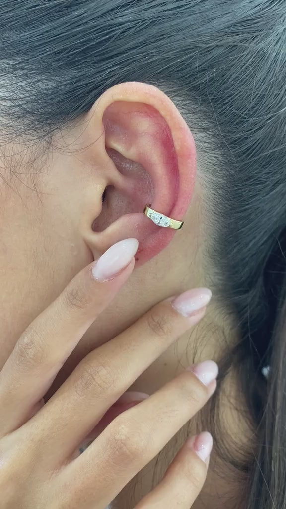 Diamond Cuff Single Earring 0.2 ct TCW, Yellow Gold