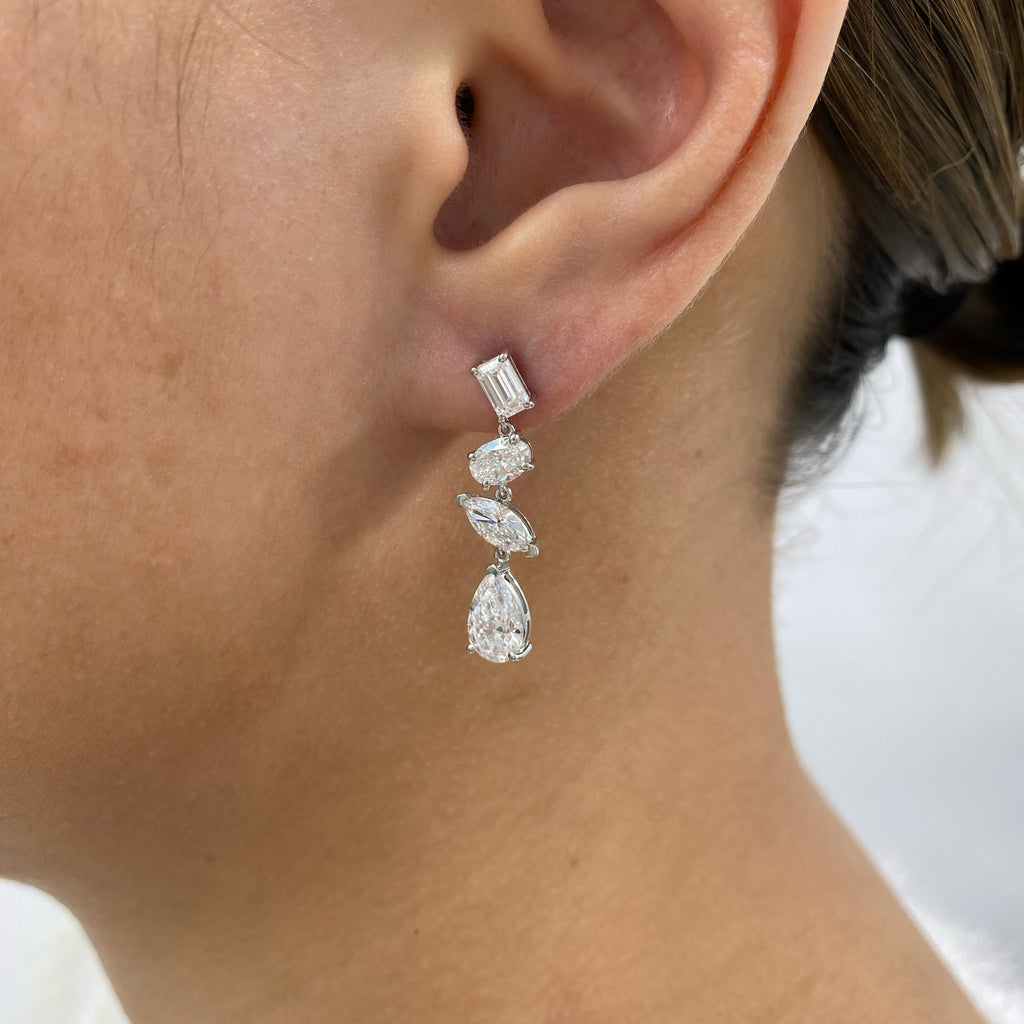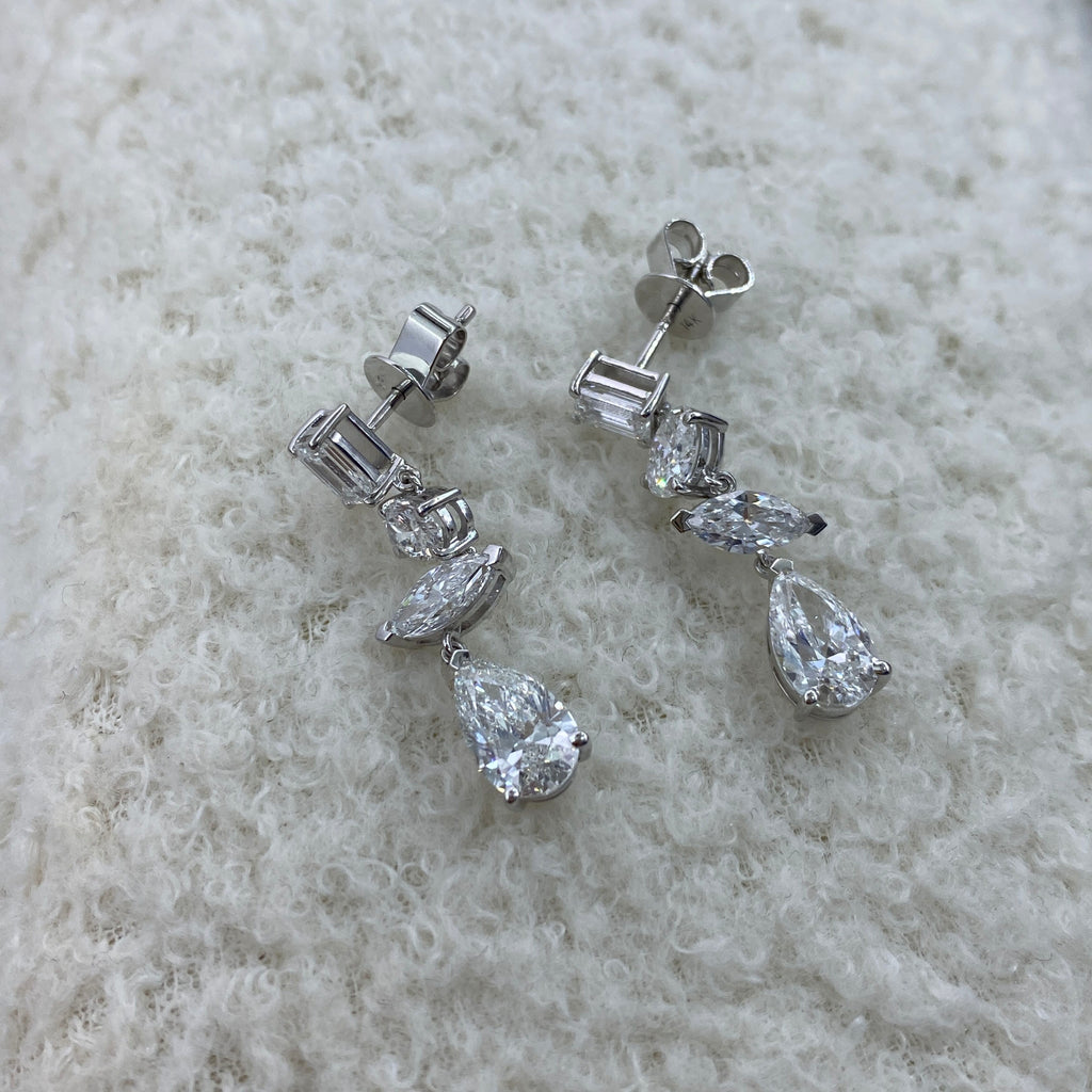 Diamond Dangle Earrings 3.5 ct White Gold