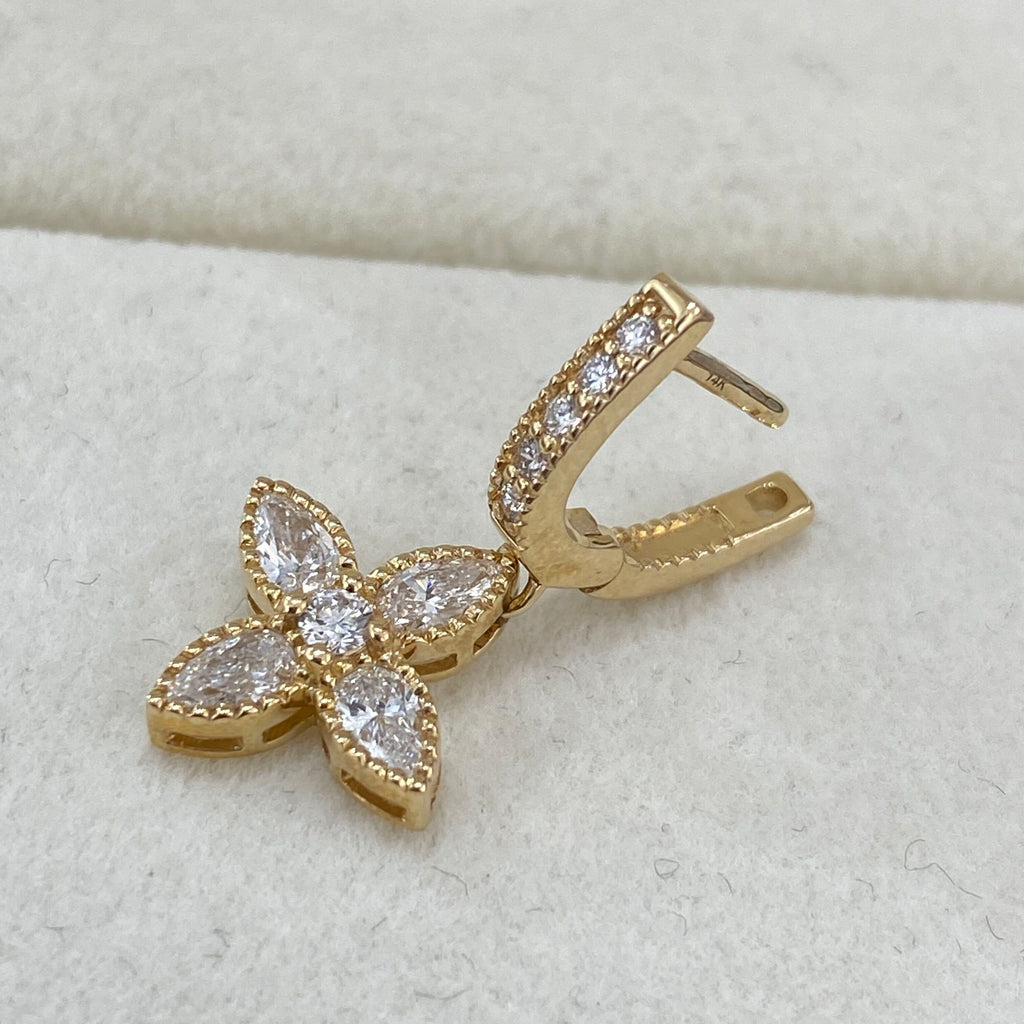 Diamond Dangle Earrings 0.95 ct Yellow Gold