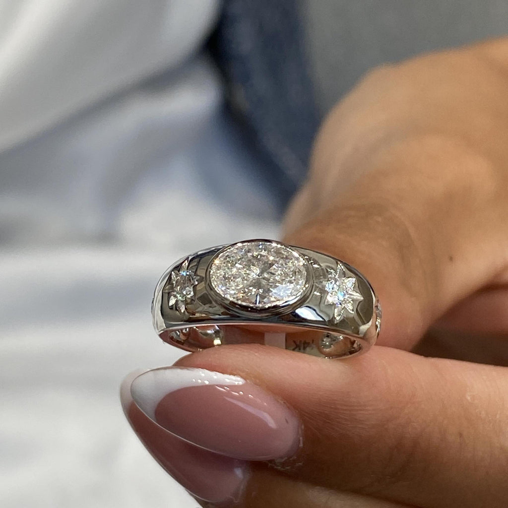 Diamond Signet Ring 1.16 Carat White Gold 14K