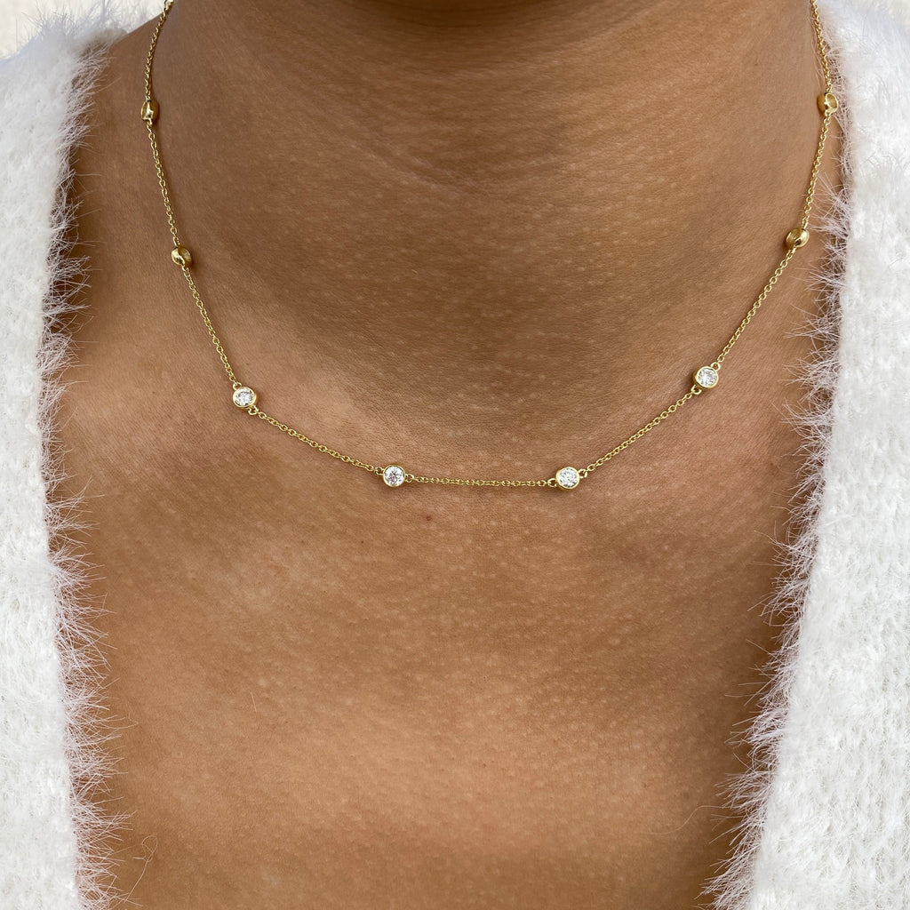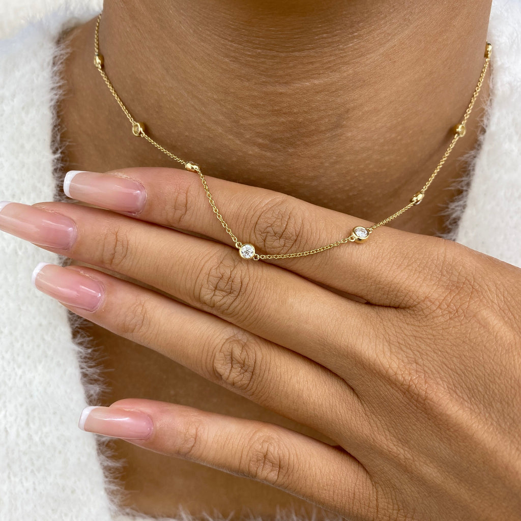 Diamond Stationed Necklace 1.3 ct Yellow Gold