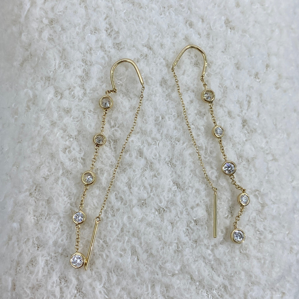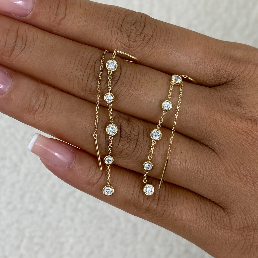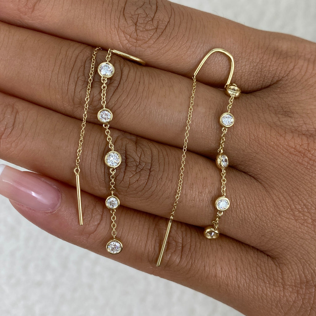 Diamond Threader Earrings 0.8 ct Yellow Gold