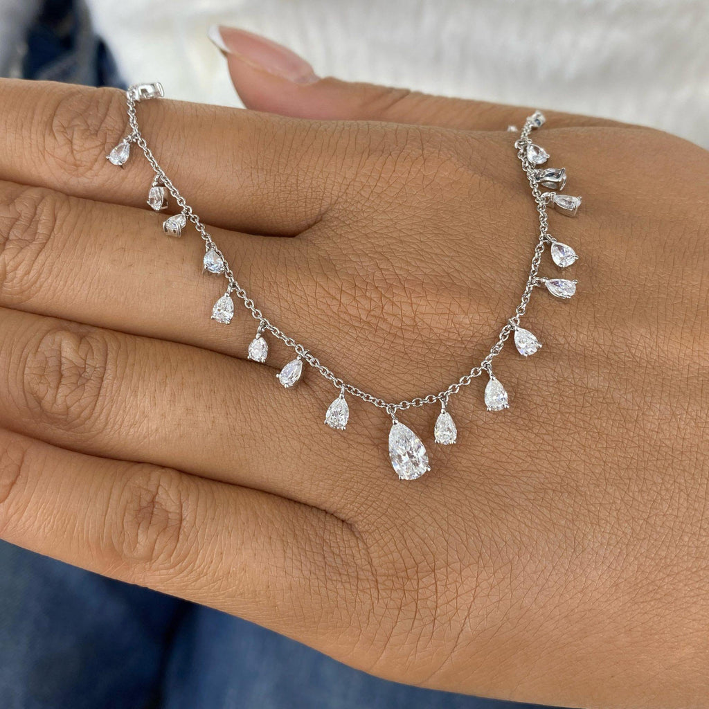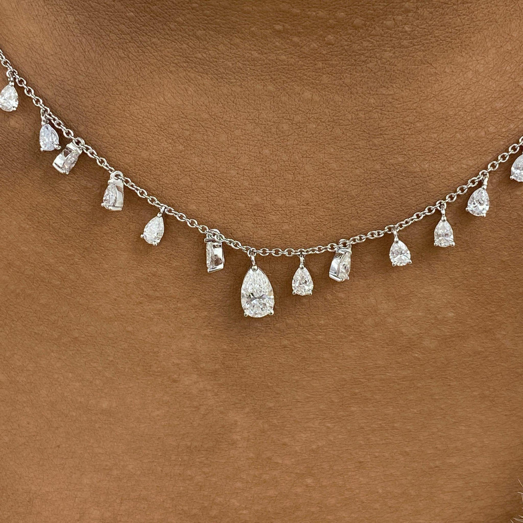Fringed Chain Necklace 2.8 ct TCW , Solid Gold 14k