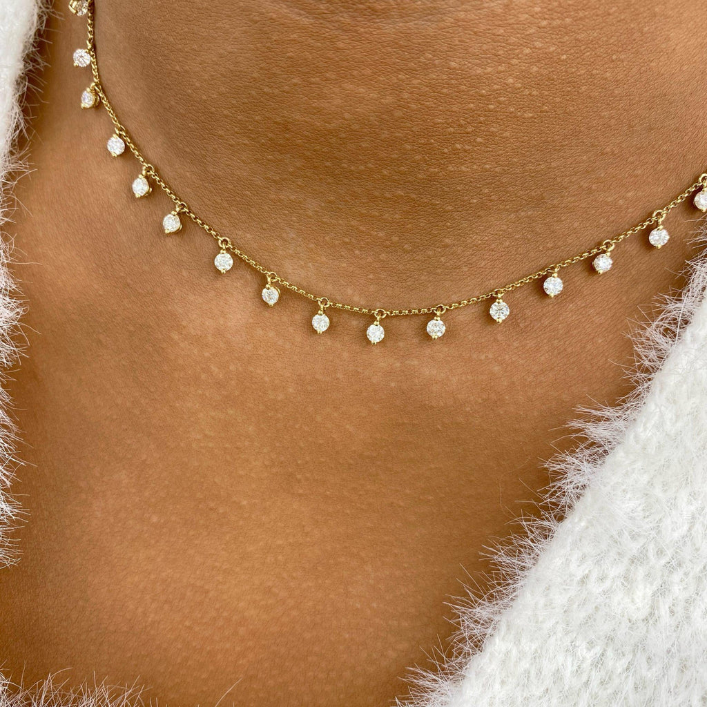 Fringed Chain Necklace 2 ct TCW , Solid Gold 14k