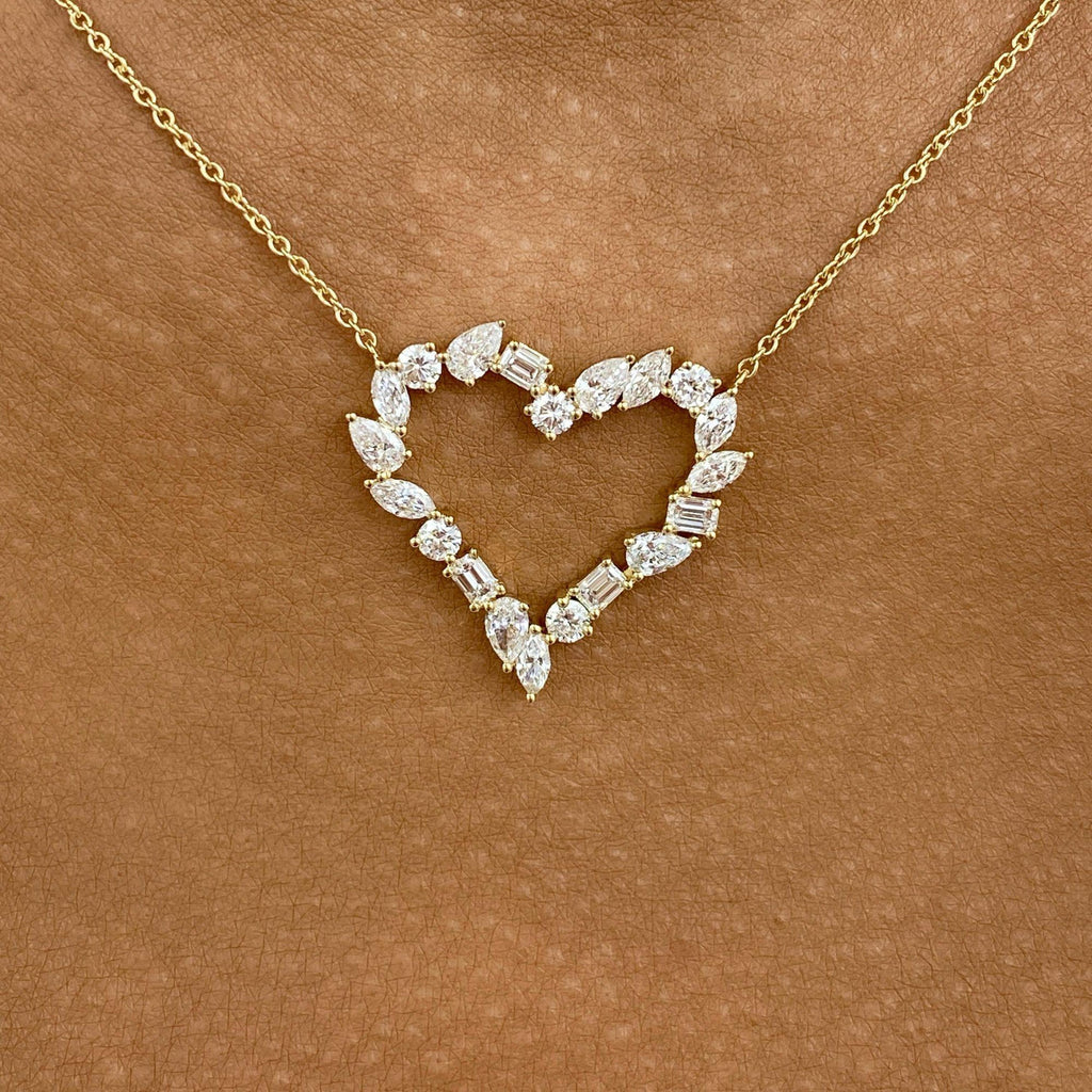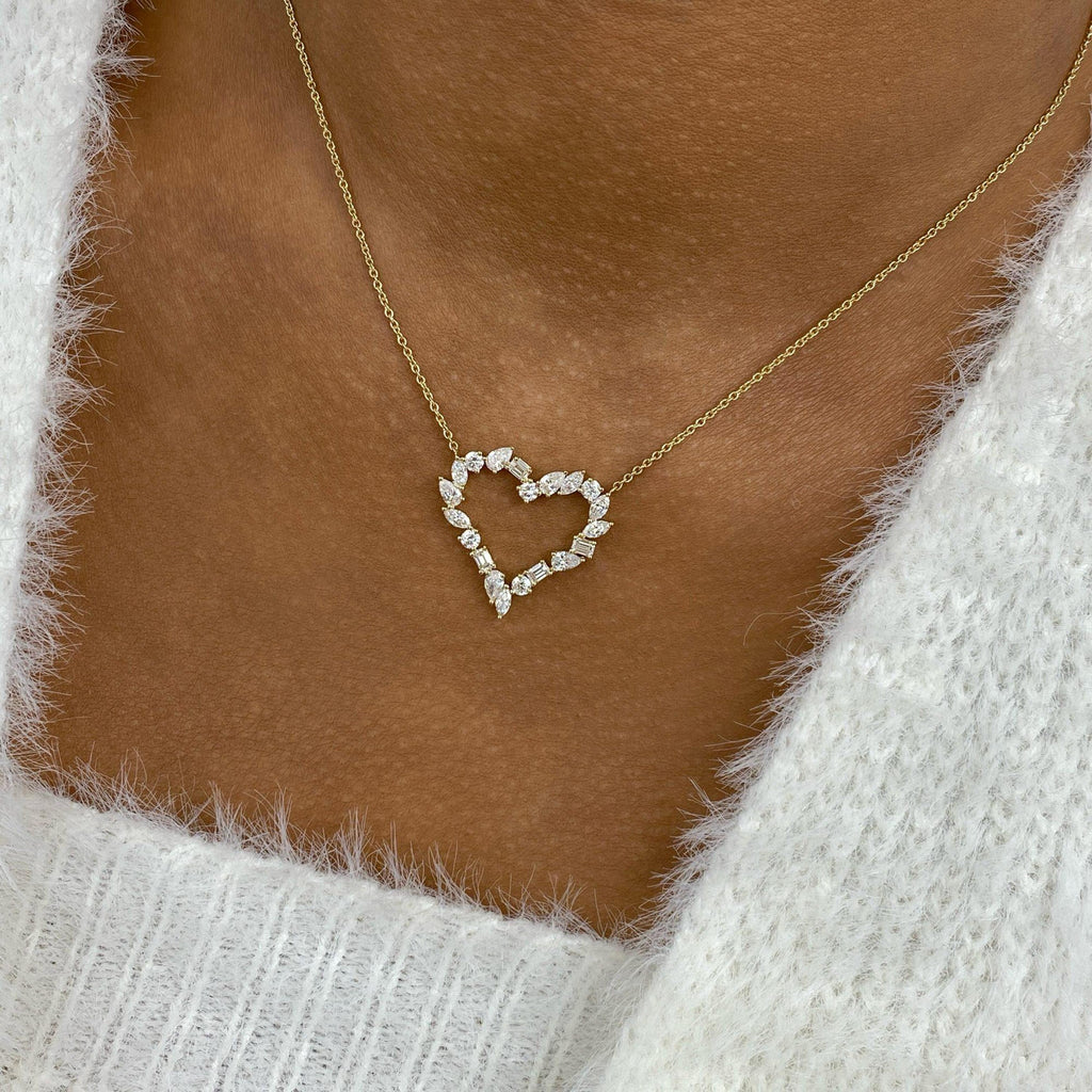 Heart Wreath Necklace 1.7 ct TCW , Solid Gold 14k