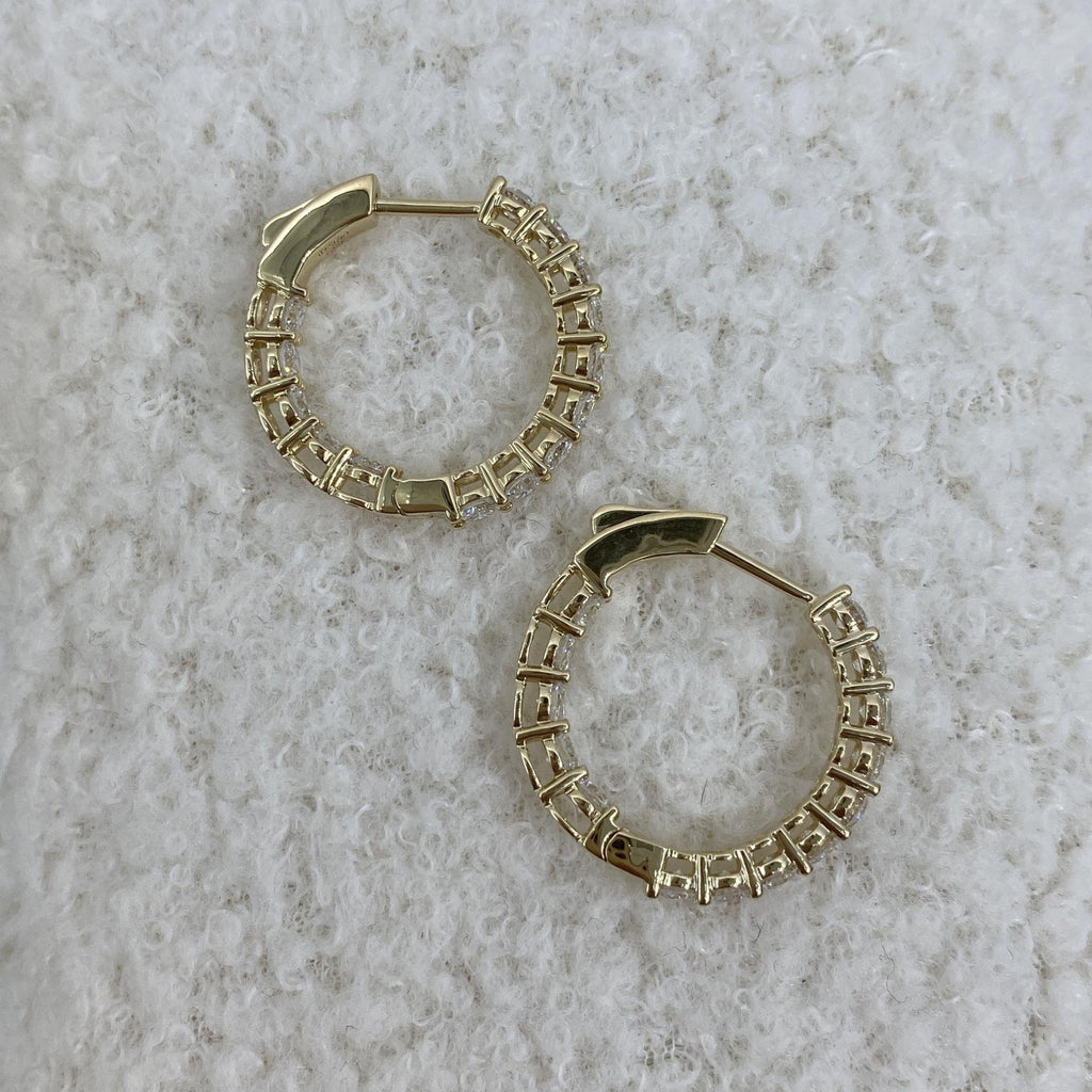 Inside-Out Clicker Huggie Earrings 2.6 ct TCW , Solid Gold 14k