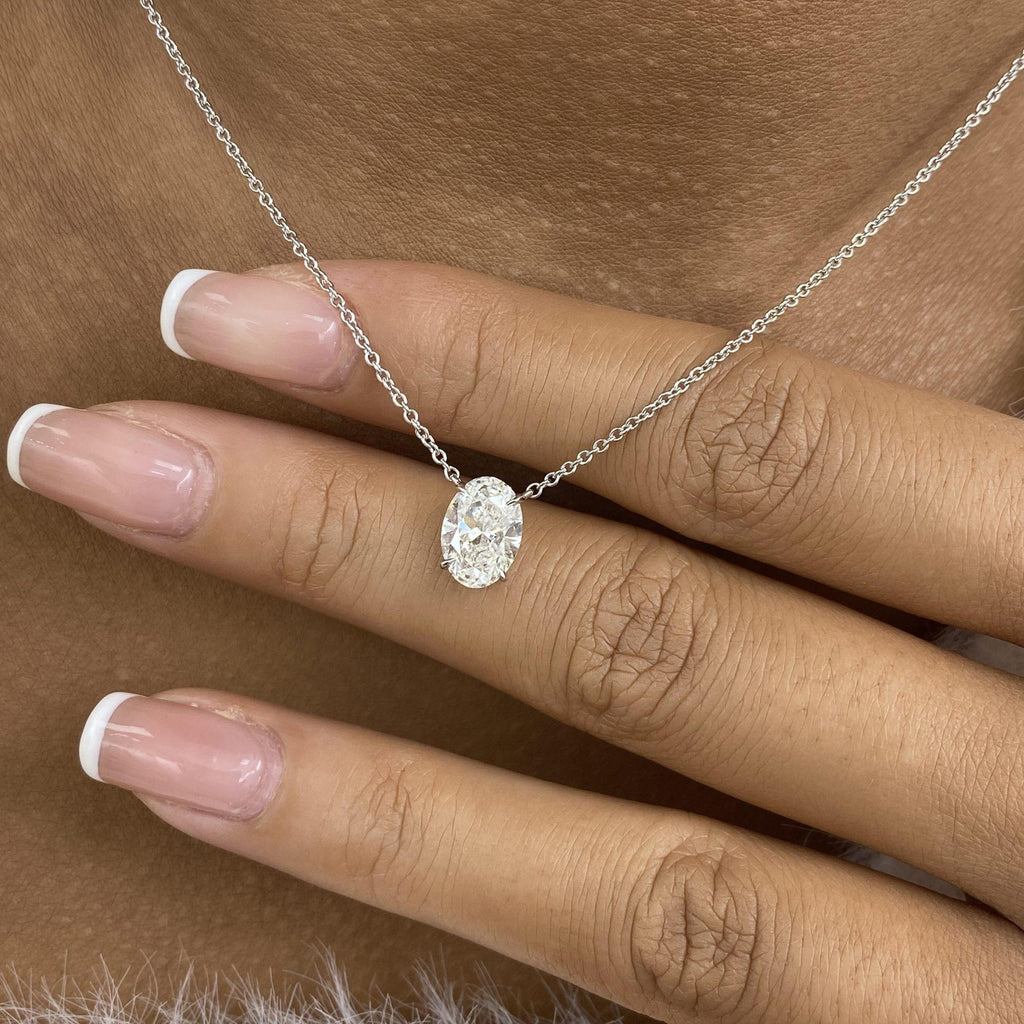 Minimalist Necklace 1.5 ct TCW , Solid Gold 14k