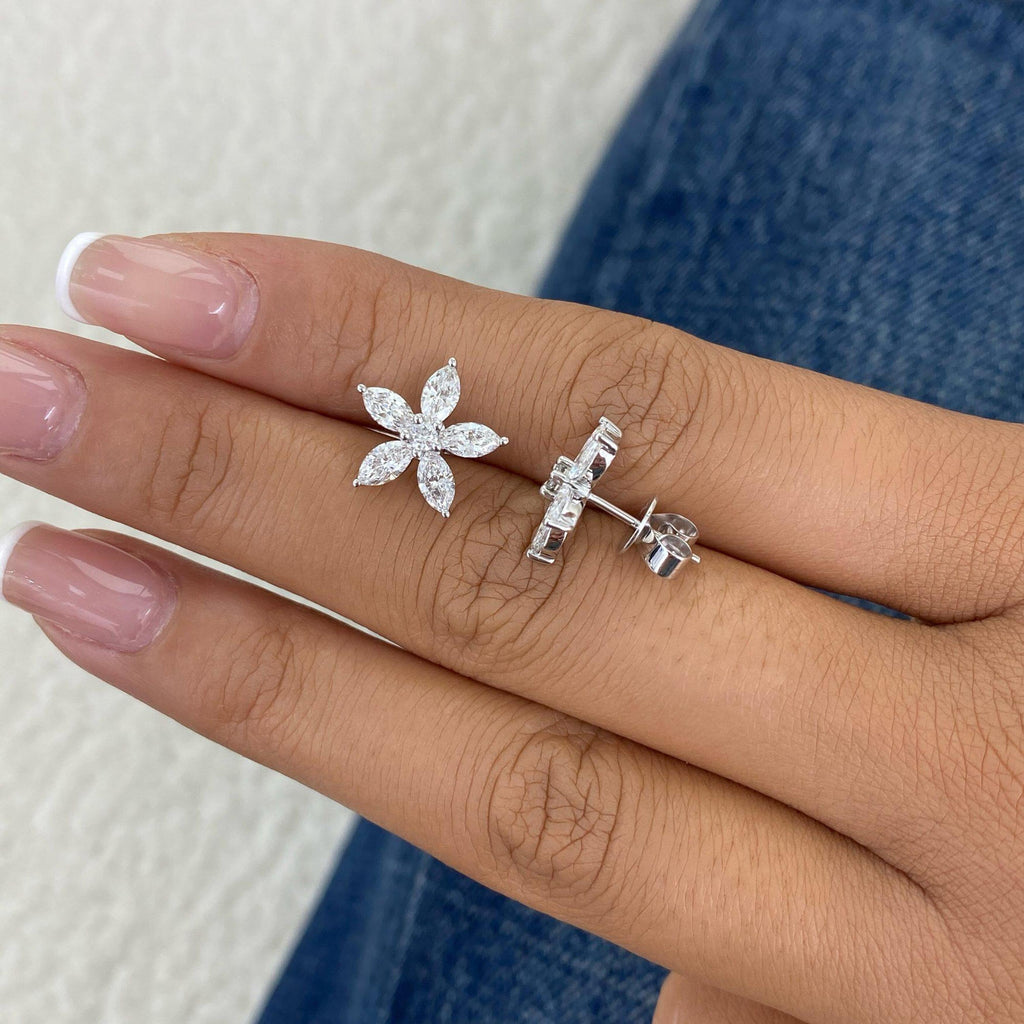 Post-On Stud Earrings 1.8 ct TCW , Solid Gold 14k