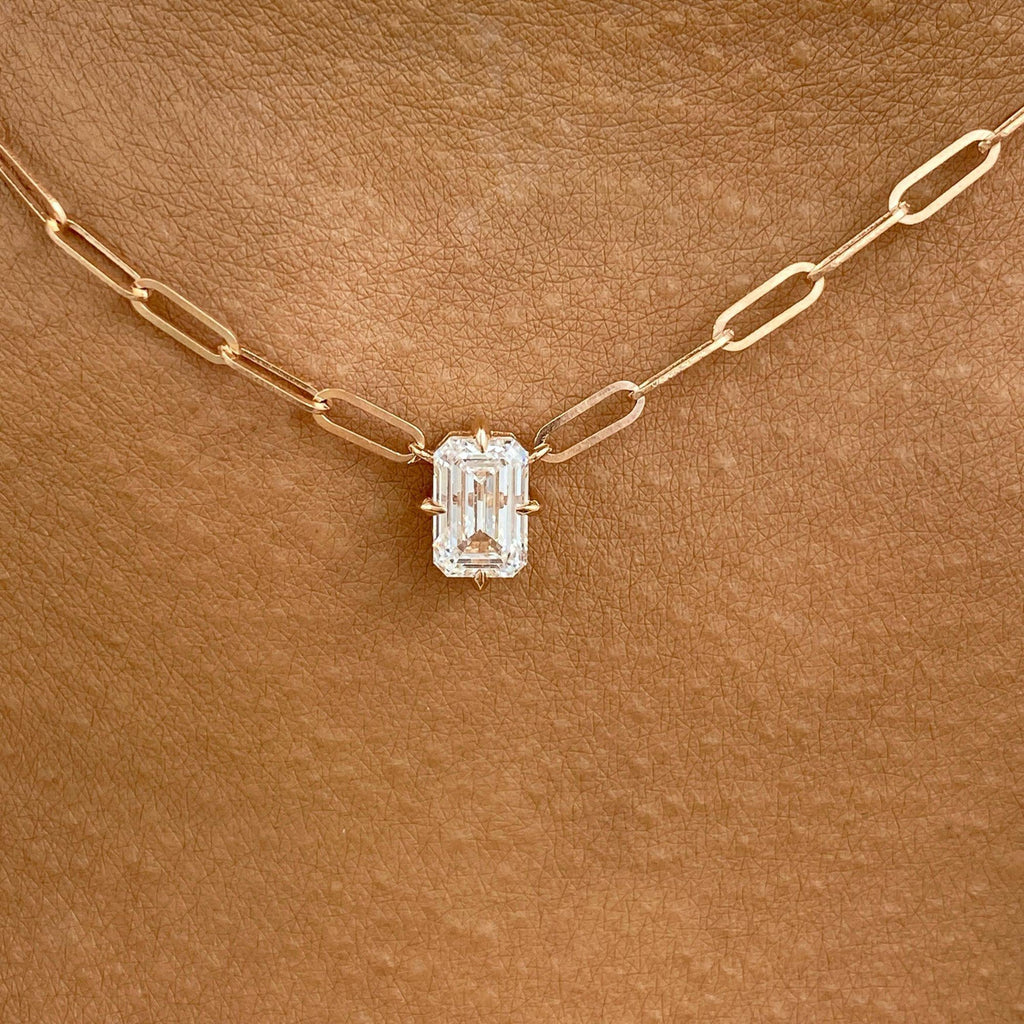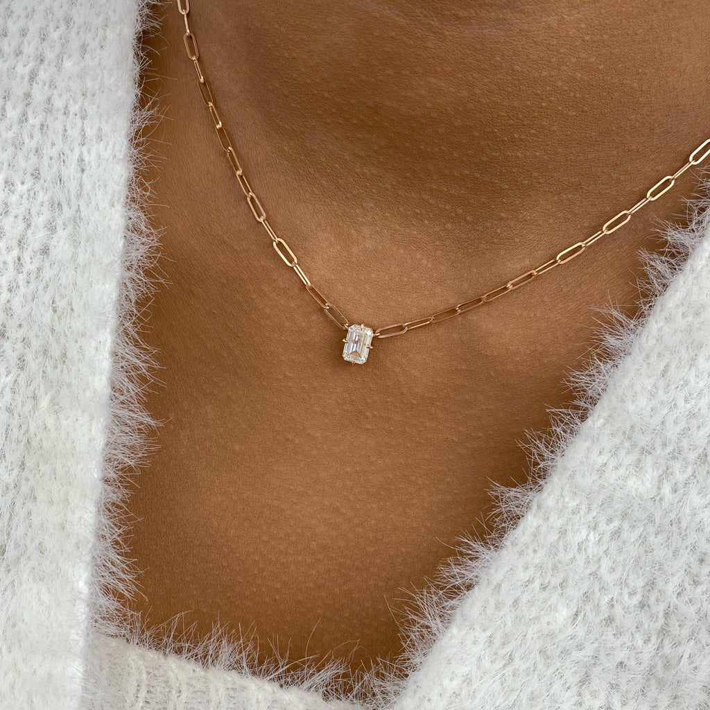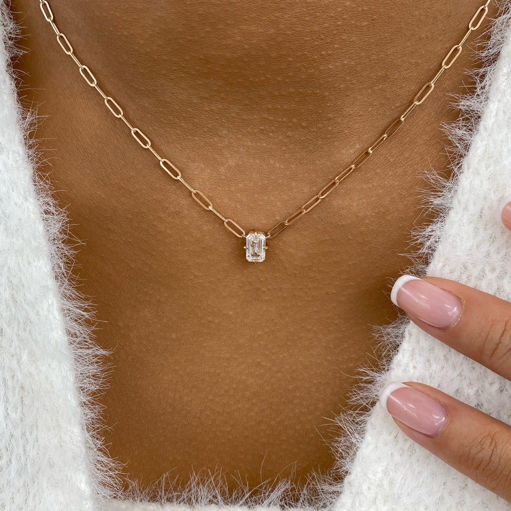 Solitaire Necklace 1 ct TCW , Solid Gold 14k
