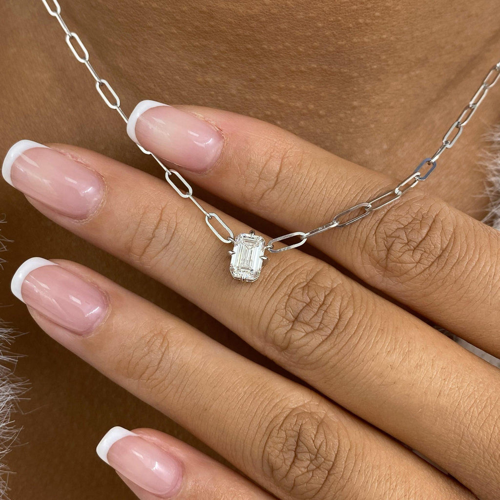 Solitaire Necklace 1 ct TCW , Solid Gold 14k